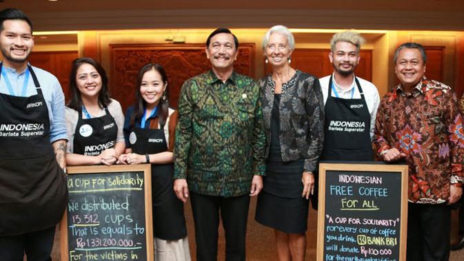 Liputan6.com, Jakarta Pertemuan tahunan IMF - World Bank di Nusa Dua, Bali berakhir pada 14 Oktober 2018. Bank BRI bekerjasama dengan Bank Indonesia membuka booth kopi di lokasi utama pertemuan untuk mempromosikan kopi dan juga barista Indonesia ke dunia Internasional.