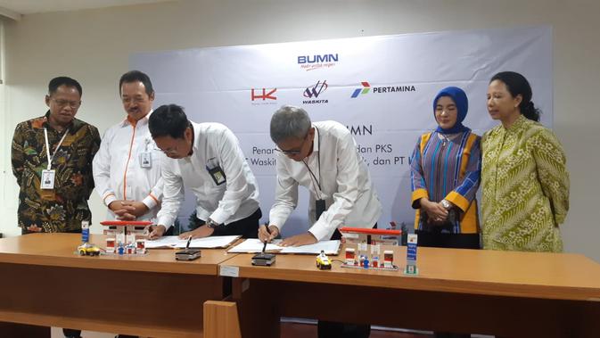 Sinergi tersebut dituangkan dalam nota kesepahaman. Kedua nota kesepahaman secara resmi ditandatangani di Kantor Kementerian BUMN pada Senin (3/12/2018), dilakukan langsung Direktur Pemasaran Ritel PT Pertamina (Persero) Mas'ud Khamid dengan Direktur Human Capital dan Pengembangan PT Hutama Karya (Persero) Putut Ariwibowo, dan Direktur Operasi II PT Waskita Karya (Persero) Tbk Bambang Rianto.