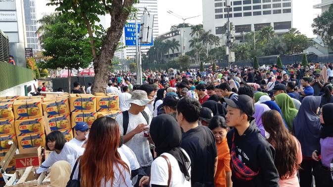 Liputan6.com, Jakarta - Relawan Pengusaha Muda Nasional (REPNAS) DKI Jakarta mengkampanyekan konsumsi buah lokal dengan cara berbagi jus buah naga dan buah apel gratis di acara Car Free Day (CFD), Sudirman, Jakarta Pusat, Minggu (24/2/2019).
