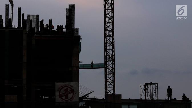 Pekerja menyelesaikan pembangunan gedung bertingkat di Jakarta, Senin (25/2). Sementara negara tetangga seperti Malaysia proyeksi pertumbuhan ekonominya berada dalam kisaran yang sama, namun posisinya di bawah Indonesia. (Liputan6.com/Immanuel Antonius)