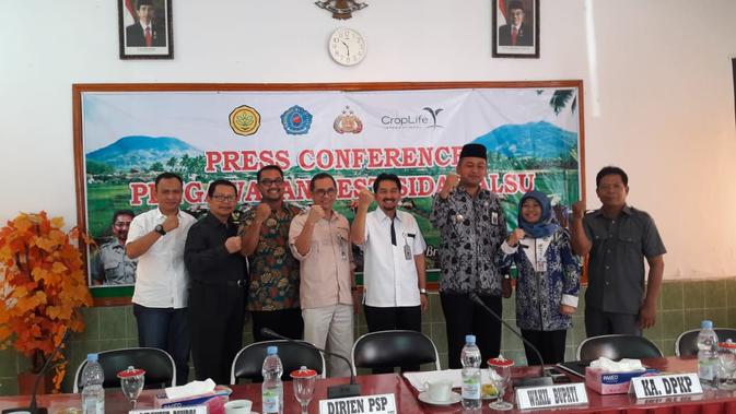 Liputan6.com, Brebes Peredaran obat pestisida palsu kian merebak di Indonesia, salah satunya ditemukan di wilayah Kabupaten Brebes, Jawa Tengah. Menyikapi permasalahan ini, Direktur Jenderal Prasarana dan Sarana Pertanian Kementerian Pertanian (Dirjen PSP Kementan), Sarwo Edhy, memberikan perhatian khusus saat hadir dalam Press Conference Pengawasan Pestisida, di Kantor Dinas Pertanian dan Ketahanan Pangan Kabupaten Brebes, Jumat (5/4/2019).