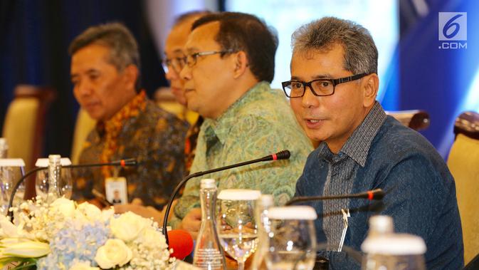 Direktur Utama Bank BRI Sunarso (empat kiri) foto bersama jajaran direksi usai Rapat Umum Pemegang Saham Luar Biasa (RUPSLB) di Jakarta, Senin (2/9/2019). Kinerja BRI hingga akhir semeste I Tahun 2019 tumbuh positif dari sisi profitabilitas dengan laba bersih Rp 16,6 T. (Liputan6.com/Angga Yuniar)