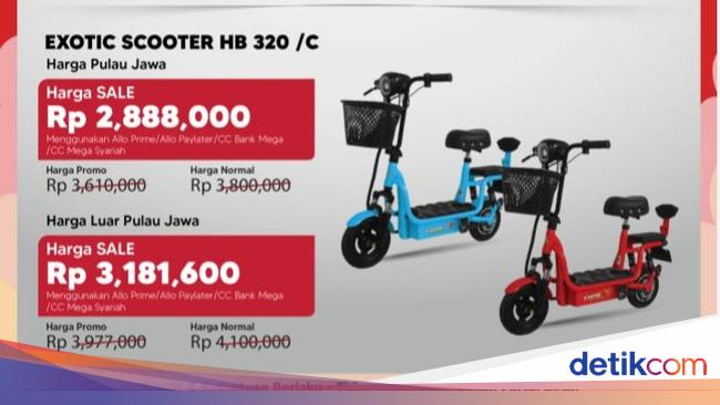 Sepeda listrik Exotic Scootern HB 320/C dibanderol mulai dari Rp 3.610.000. Padahal harga normalnya Rp 3.800.000